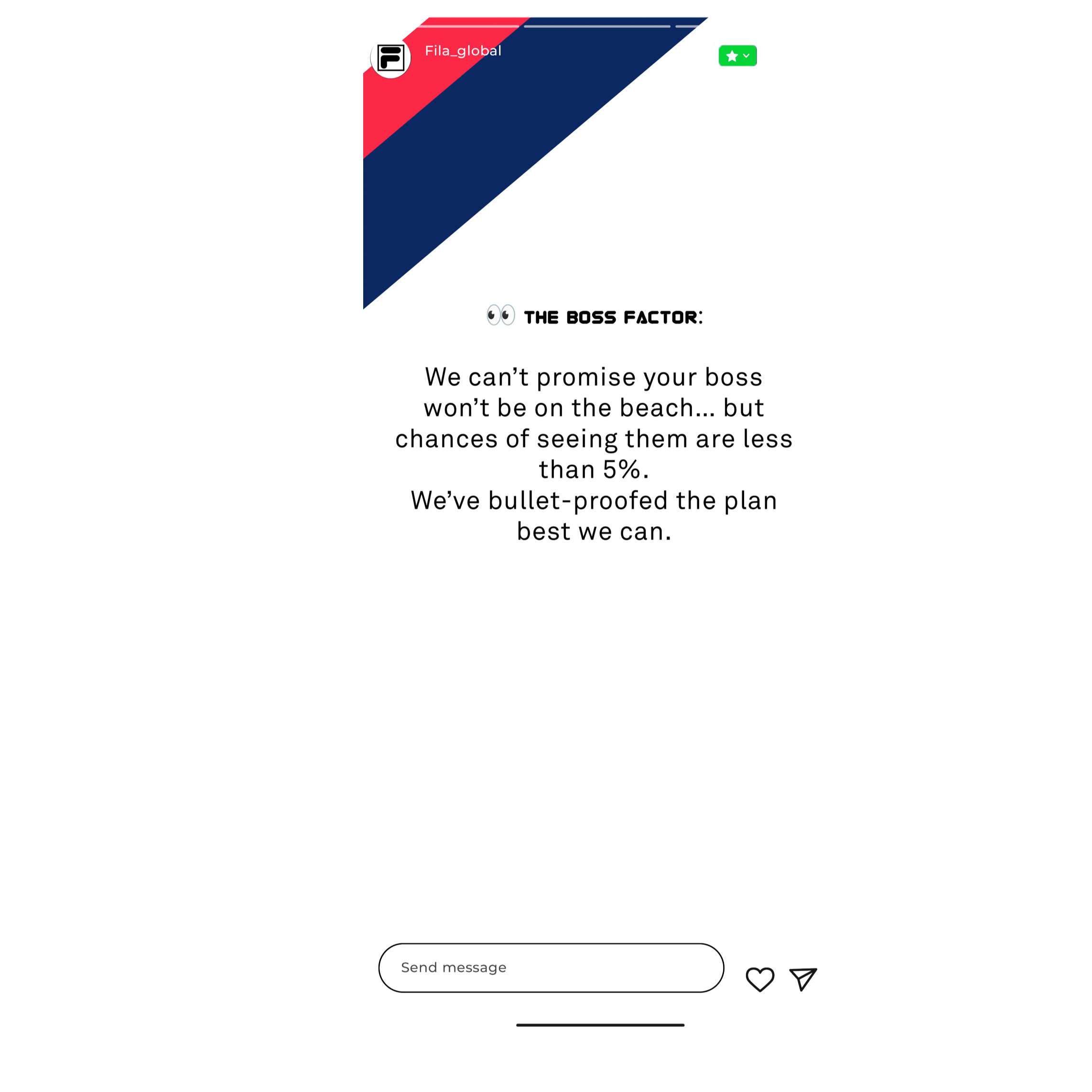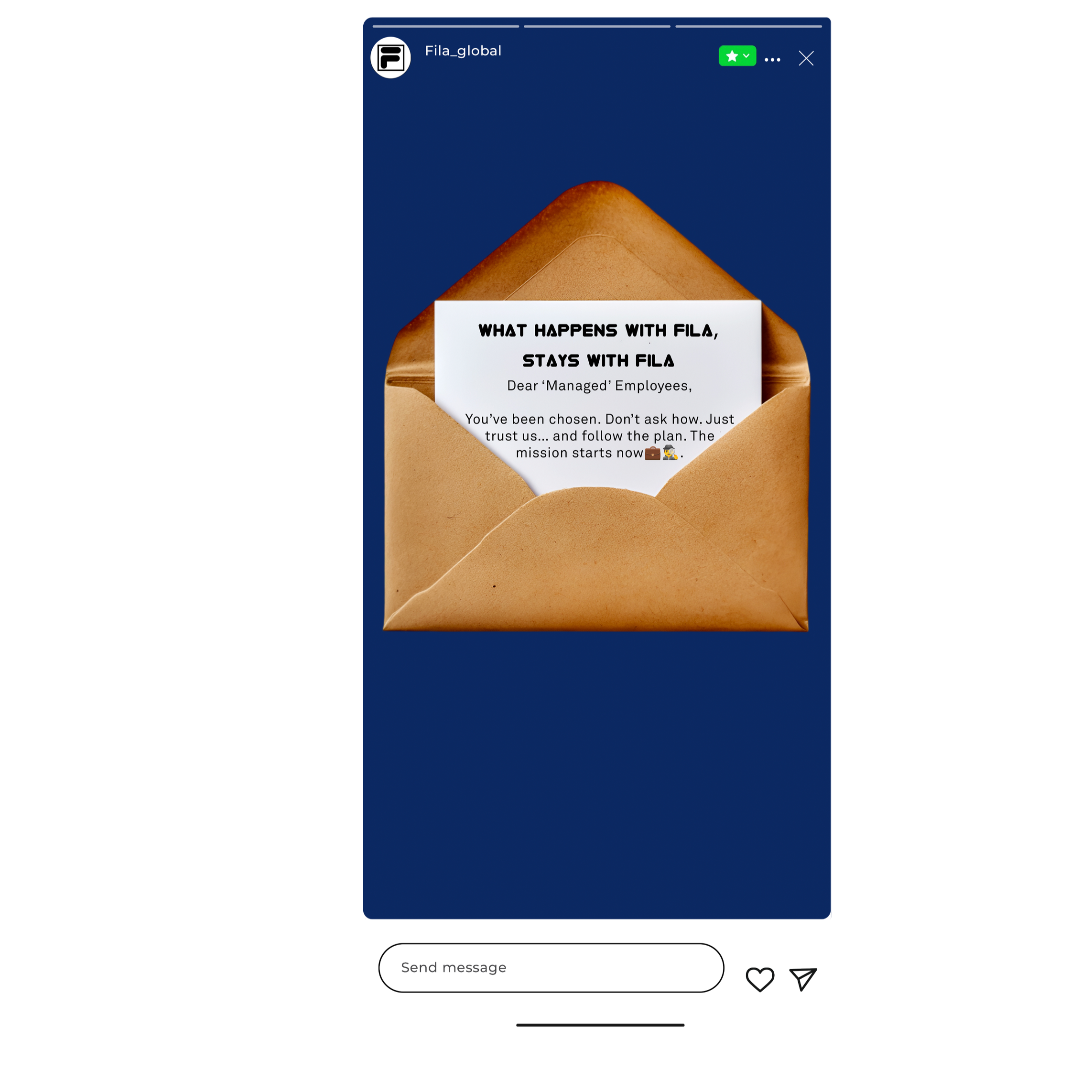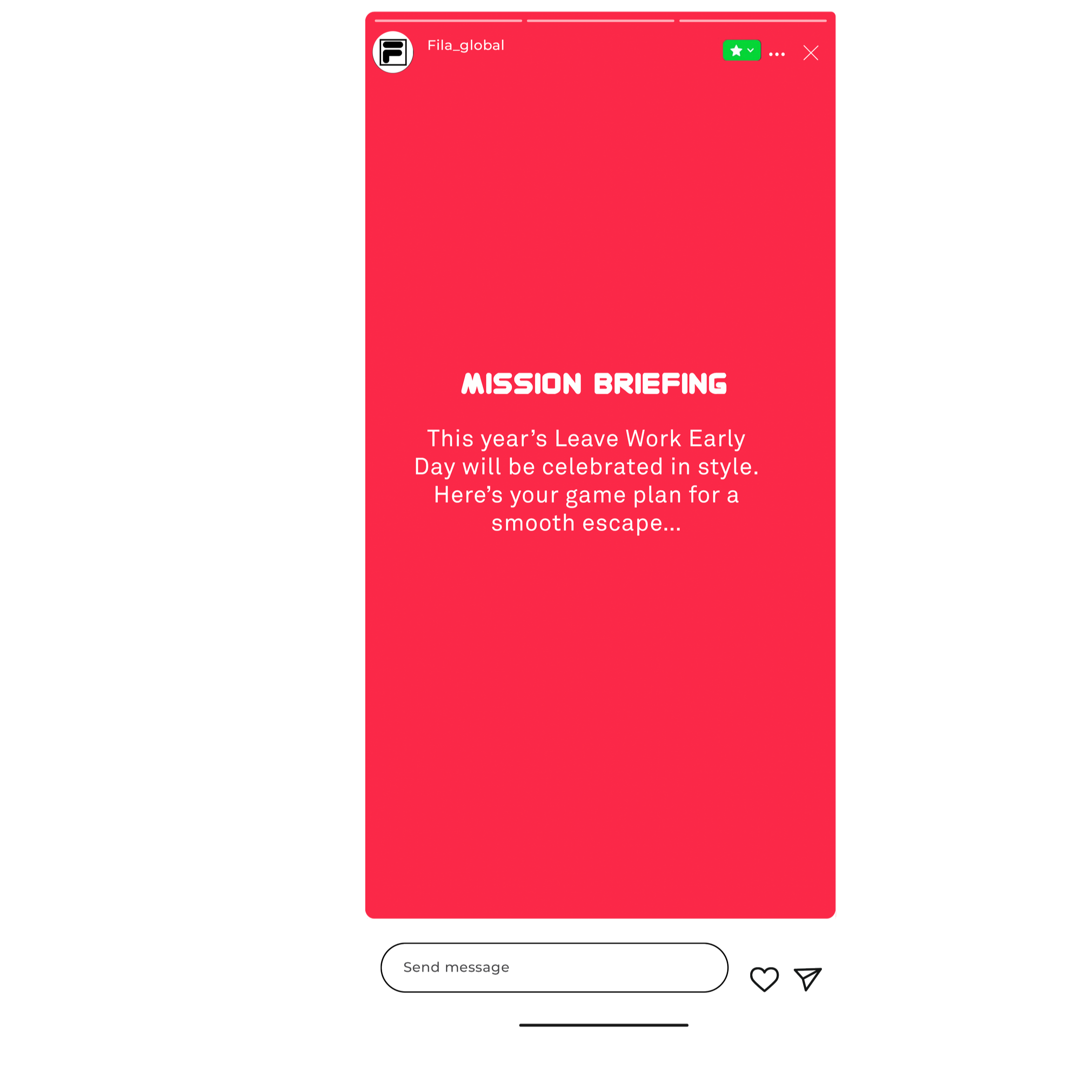 With an Instagram poll, Fila identified the "managed" employees and secretly added them to a Close Friends list on Instagram. There, they received a step-by-step escape plan, from crafting the perfect excuse to switching into FILA’s work-to-play gear. A final “Are you in?” poll sealed the mission. Those who accepted? They executed the plan flawlessly, ditching work for a relaxing, guilt-free beach day at FILA’s Escape Point.